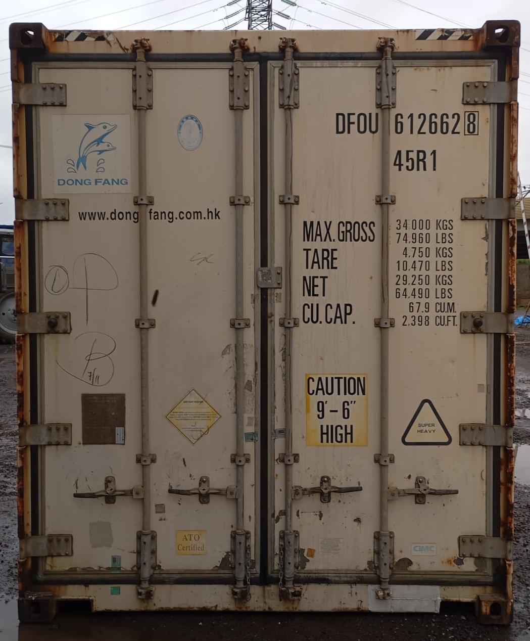 - 20-футовый контейнер (Dry Reefer): объем ~28 м³, грузоподъёмность до 22 тонн.