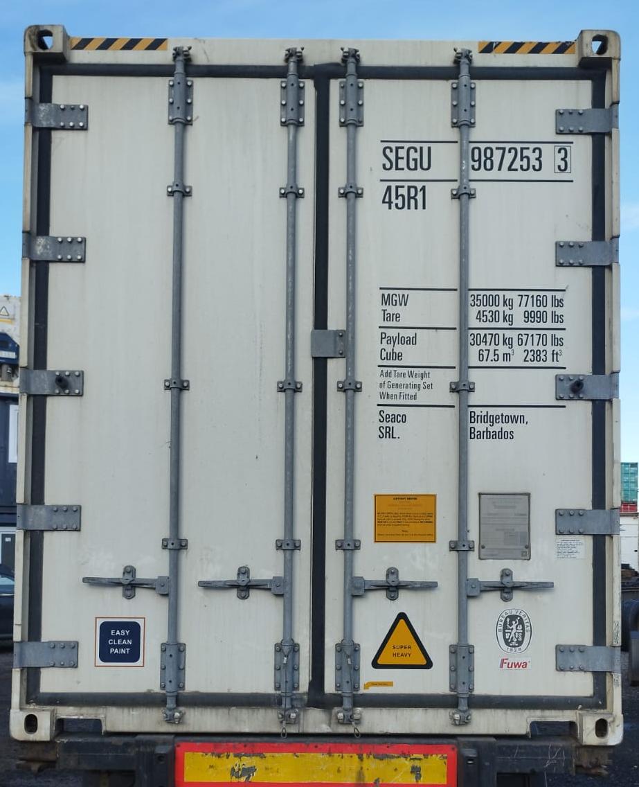 - 40-футовый High Cube контейнер (Reefer HC): объем ~68 м³, грузоподъёмность до 29 тонн.