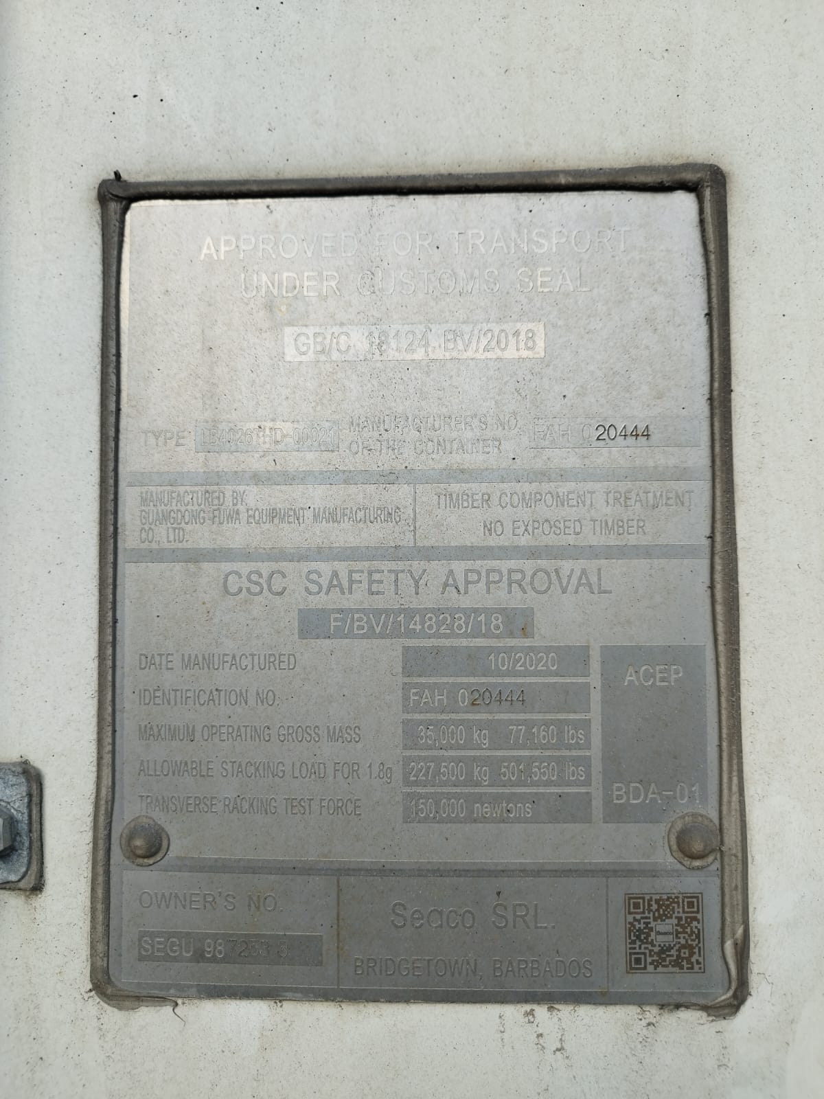 - Гарантийный талон на техническую часть и корпус контейнера.