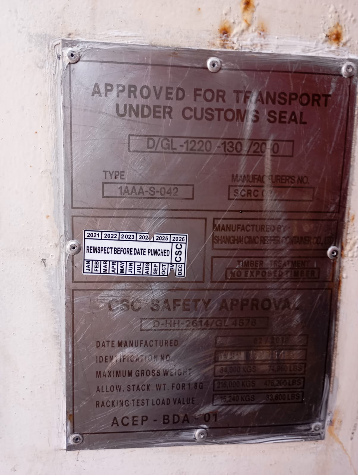 Вес контейнера, Tare weight:кг
