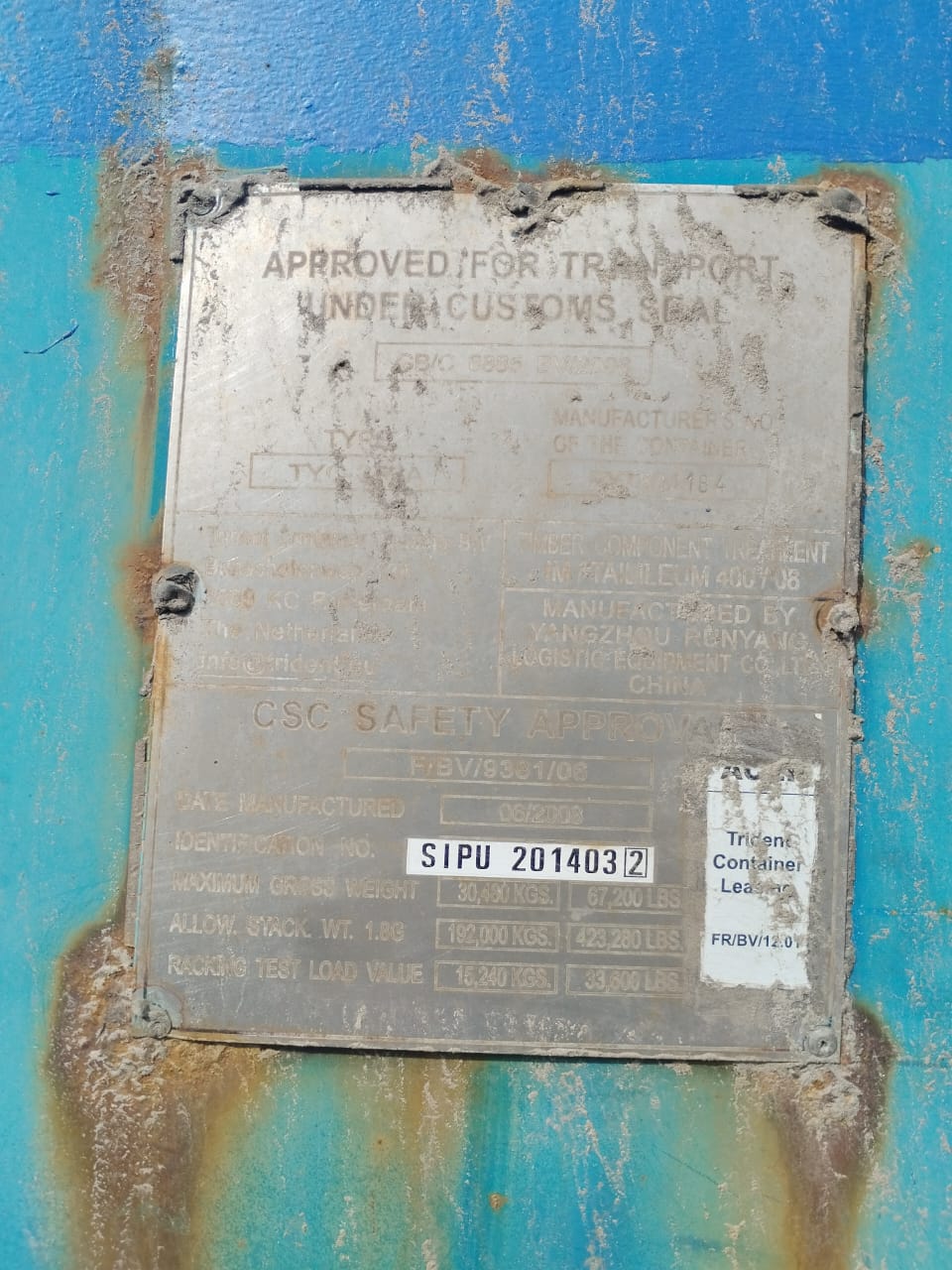 Вес контейнера, Tare weight:кг