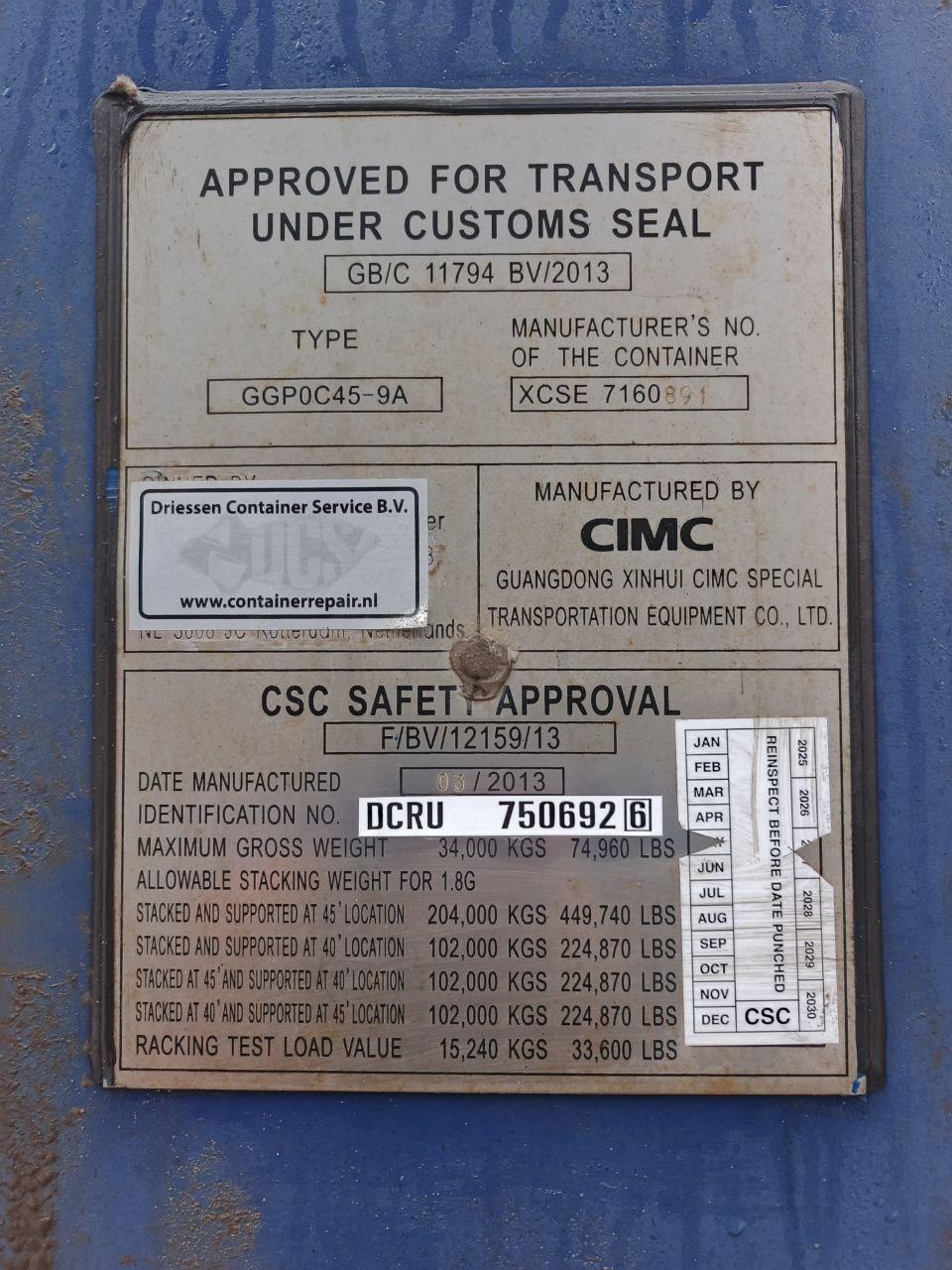 Вес контейнера, Tare weight:кг