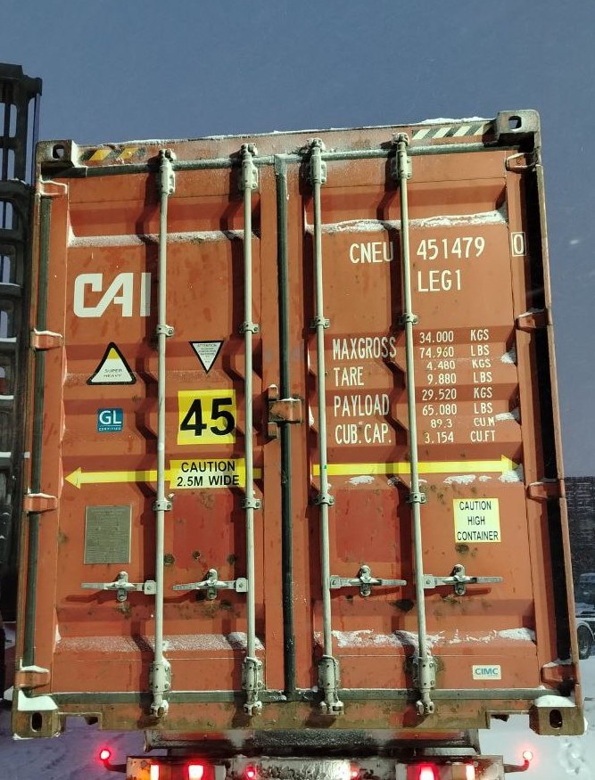 45 футовый контейнер, 33 паллета- контейнер с очень большой вместимостью - 89м3.