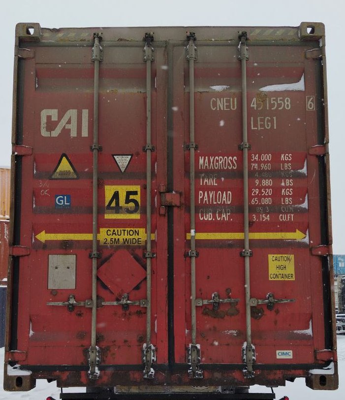 45 футовый контейнер, 33 паллета- контейнер с очень большой вместимостью - 89м3.