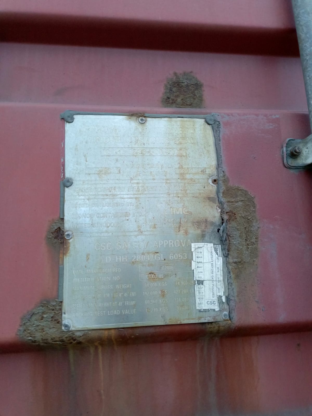 Вес контейнера, Tare weight:кг