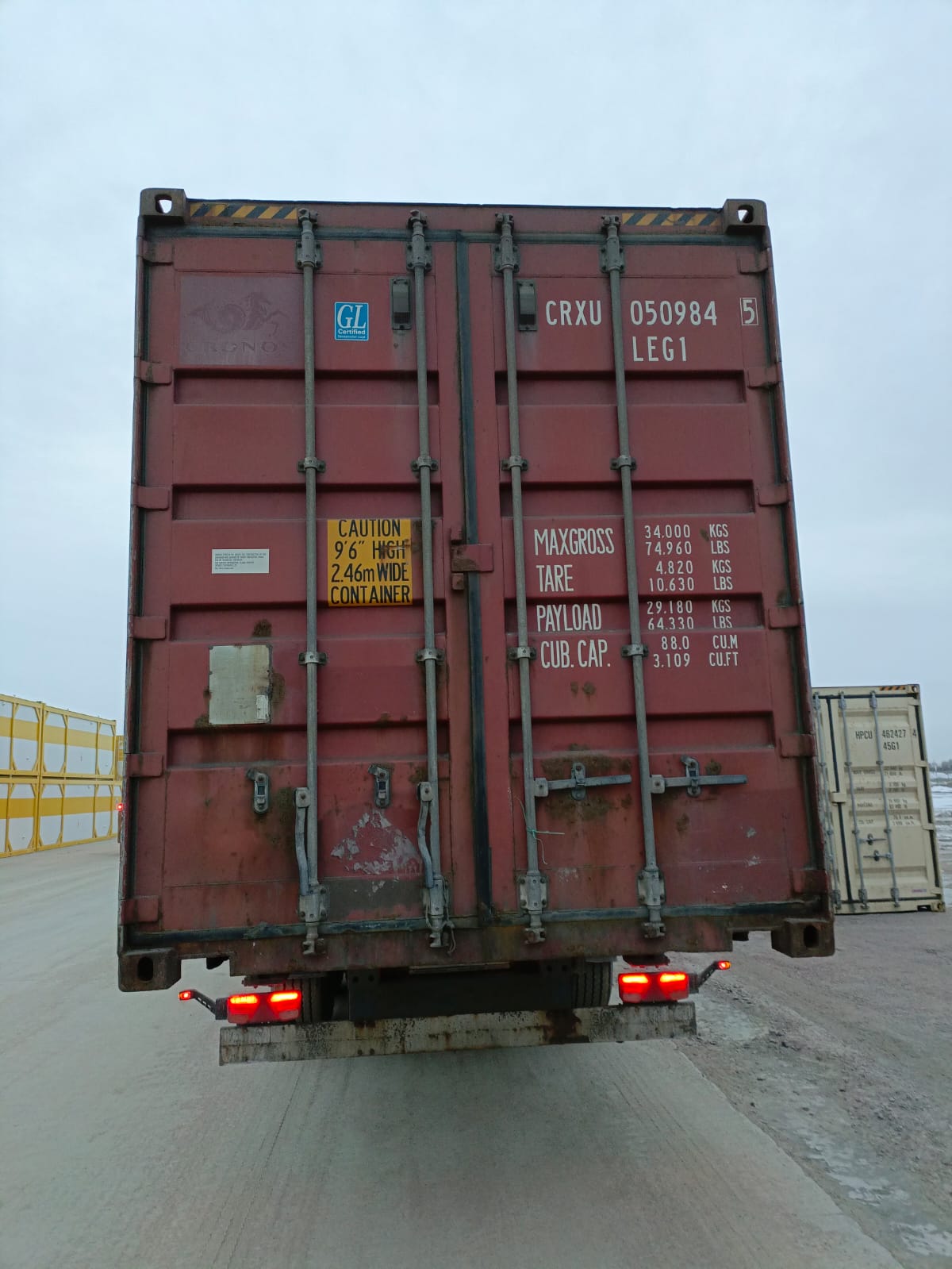 45 футовый контейнер, 33 паллета- контейнер с очень большой вместимостью - 89м3.