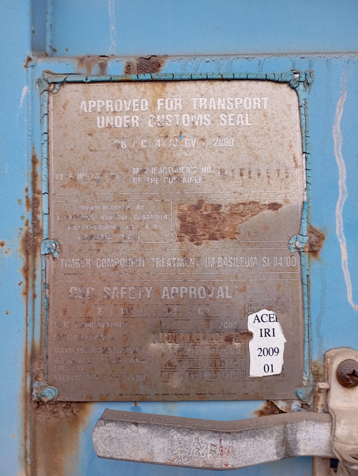 Вес контейнера, Tare weight:кг
