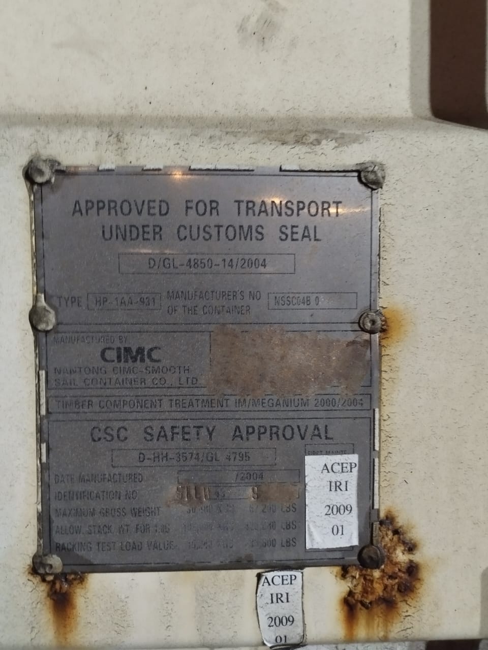 Вес контейнера, Tare weight:кг